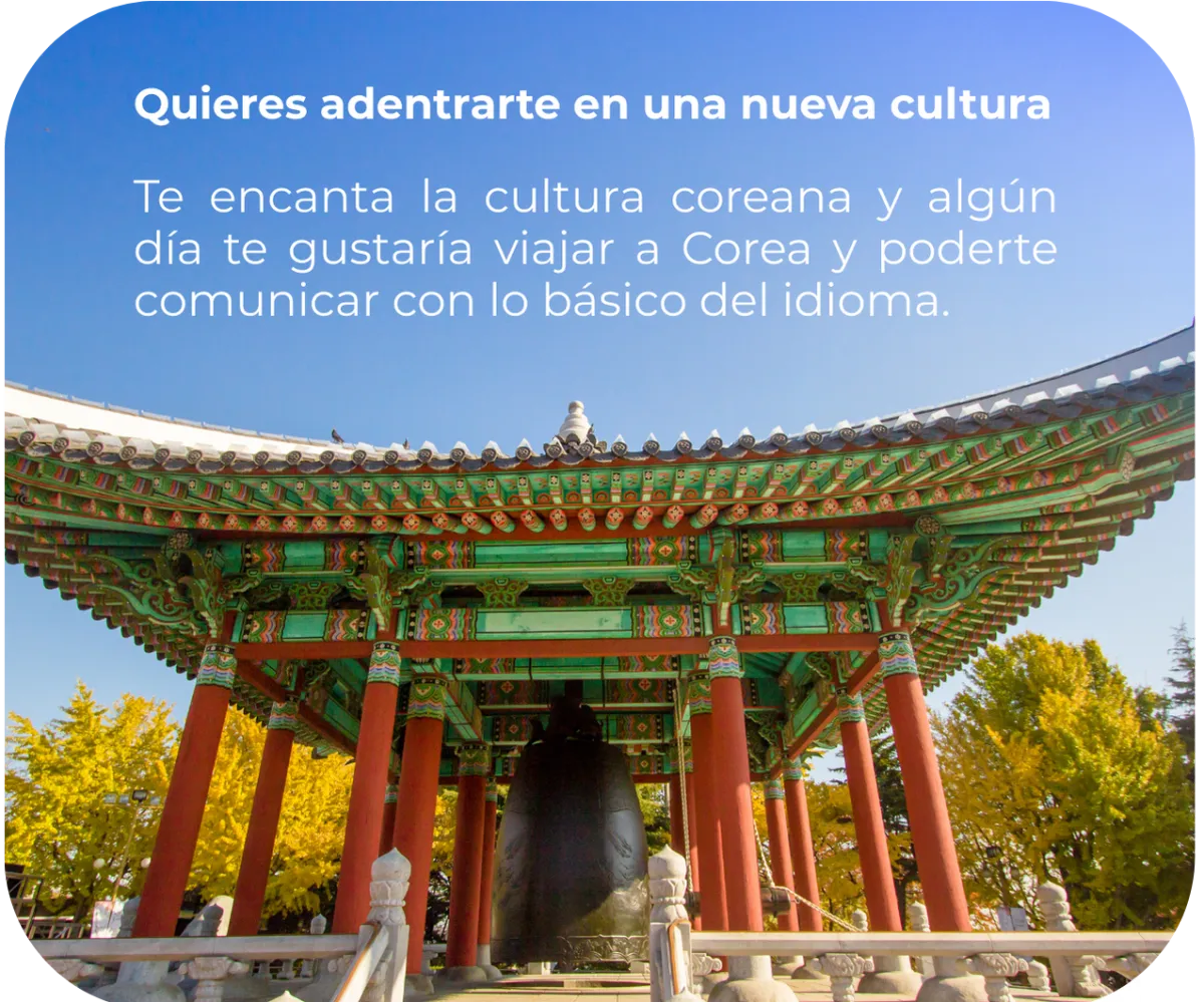 Te encanta la cultura coreana y algún día te gustaría viajar a Corea y poderte comunicar con lo básico del idioma.